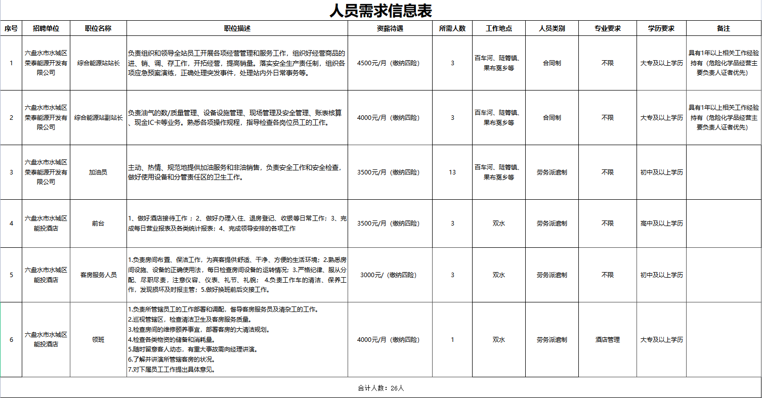 六盤水市水城區(qū)能投實業(yè)(集團(tuán))有限公司面向社會公開招聘26名工作人員